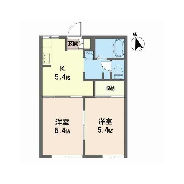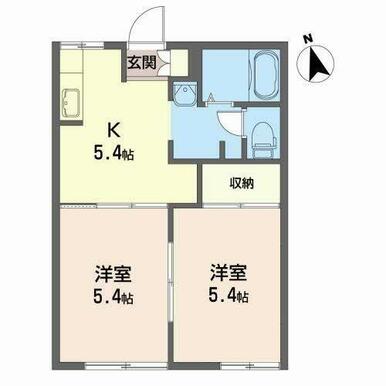 | 間取り | 2K(K5.4帖 洋室5.4帖 洋室5.4帖) | 主要採光面 | 南西 |