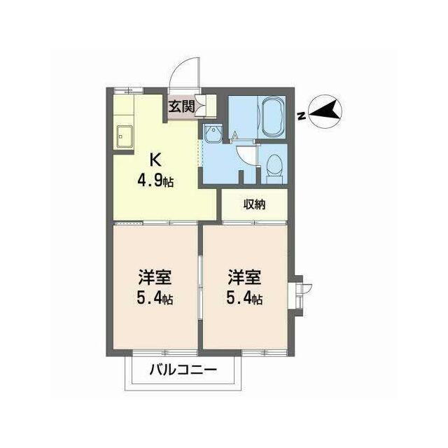| 間取り | 2K(K4.9帖 洋室5.4帖 洋室5.4帖) | 主要採光面 | 西 |