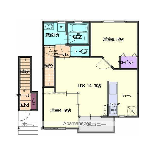 2LDK(洋4.5 洋6.5 LDK14.3) |