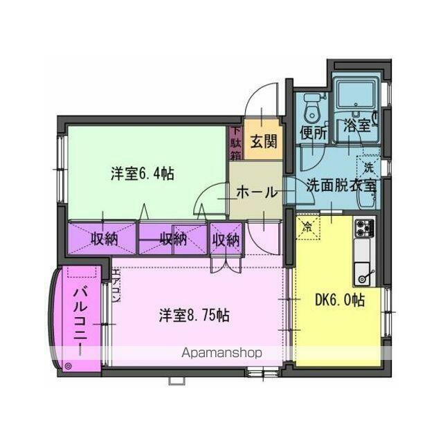| 間取り | 2DK(洋8.7 洋6.4 DK6) | 主要採光面 | 南東 |