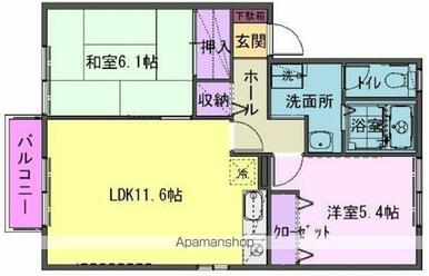 | 間取り | 2LDK(和6.1 洋5.4 LDK11.6) | 主要採光面 | 南 |