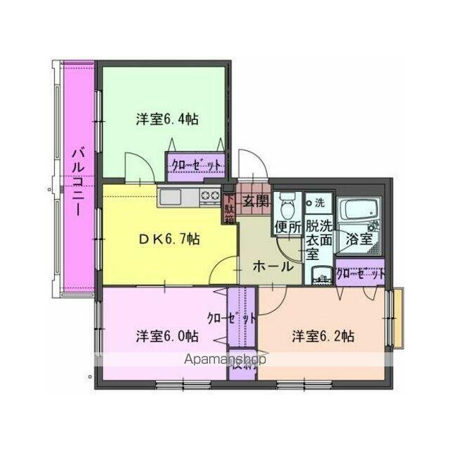 | 間取り | 3DK(洋6.4 洋6.2 洋6 DK6.7) | 主要採光面 | 南 |