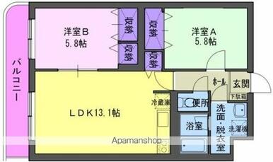 | 間取り | 2LDK(洋5.8 洋5.8 LDK13.1) | 主要採光面 | 南東 |